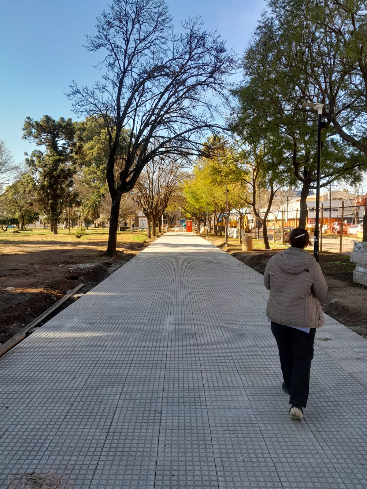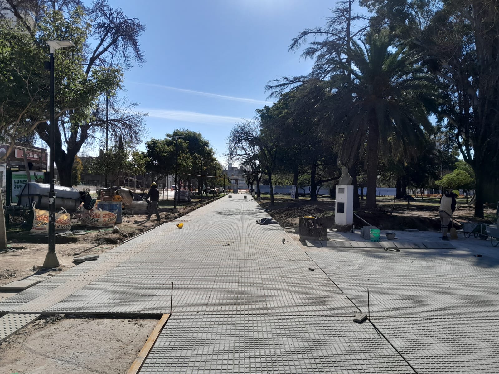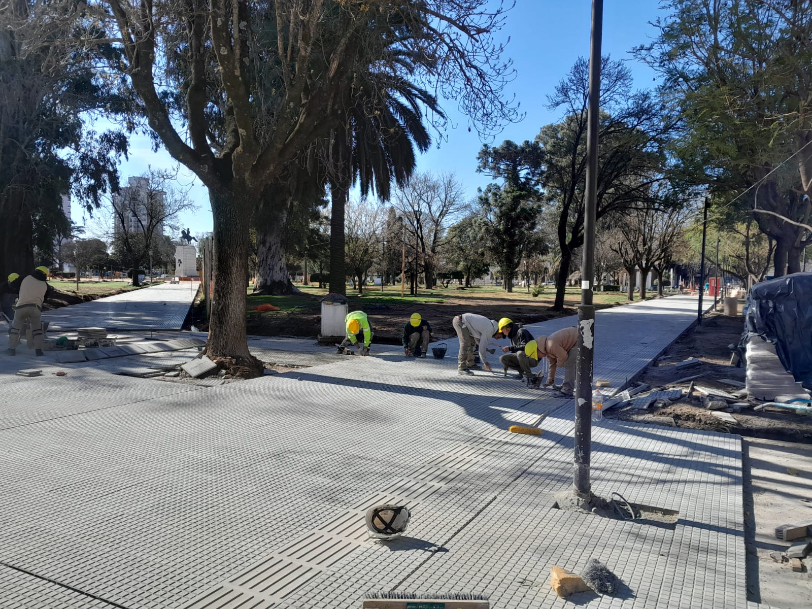 El proyecto contempla la transformación de las calles que rodean la plaza en áreas de circulación de baja velocidad, niveladas con el espacio central para ampliar su superficie y permitir un uso intensivo en eventos especiales. Esta intervención crea una franja de convivencia entre peatones y vehículos, mejorando la seguridad vial y la integración urbana. Se incorporarán dos nuevas áreas de juegos infantiles diferenciadas por edades. Las veredas serán renovadas con mosaico granítico y bandas podotáctiles, garantizando una accesibilidad plena. El reposicionamiento del mástil sobre el eje cívico este-oeste permitirá una mejor organización de los actos públicos. Con un sistema integral de iluminación que comprende tanto el área central como sectores estratégicos, con un nuevo tablero eléctrico y la recuperación del actual sector de guardado.
