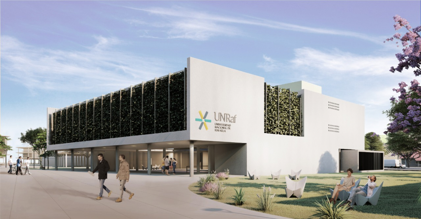 Construcción del segundo edificio del Campus de la Universidad de Rafaela ubicado sobre Ruta Nacional 34, en el suroeste de dicha ciudad.